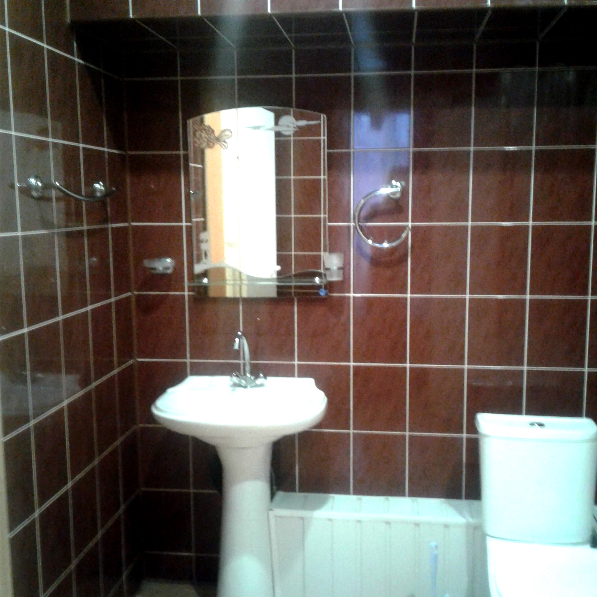 Санузел: душевая кабина, раковина, унитаз