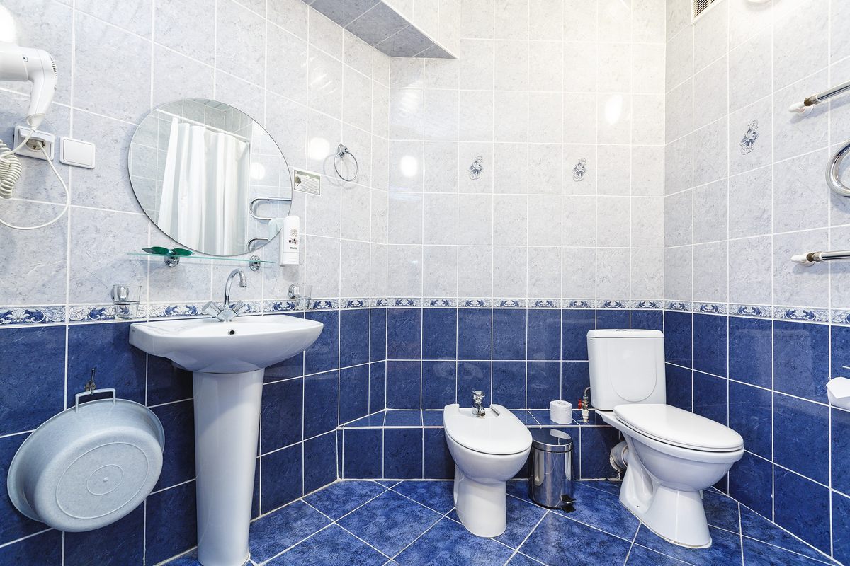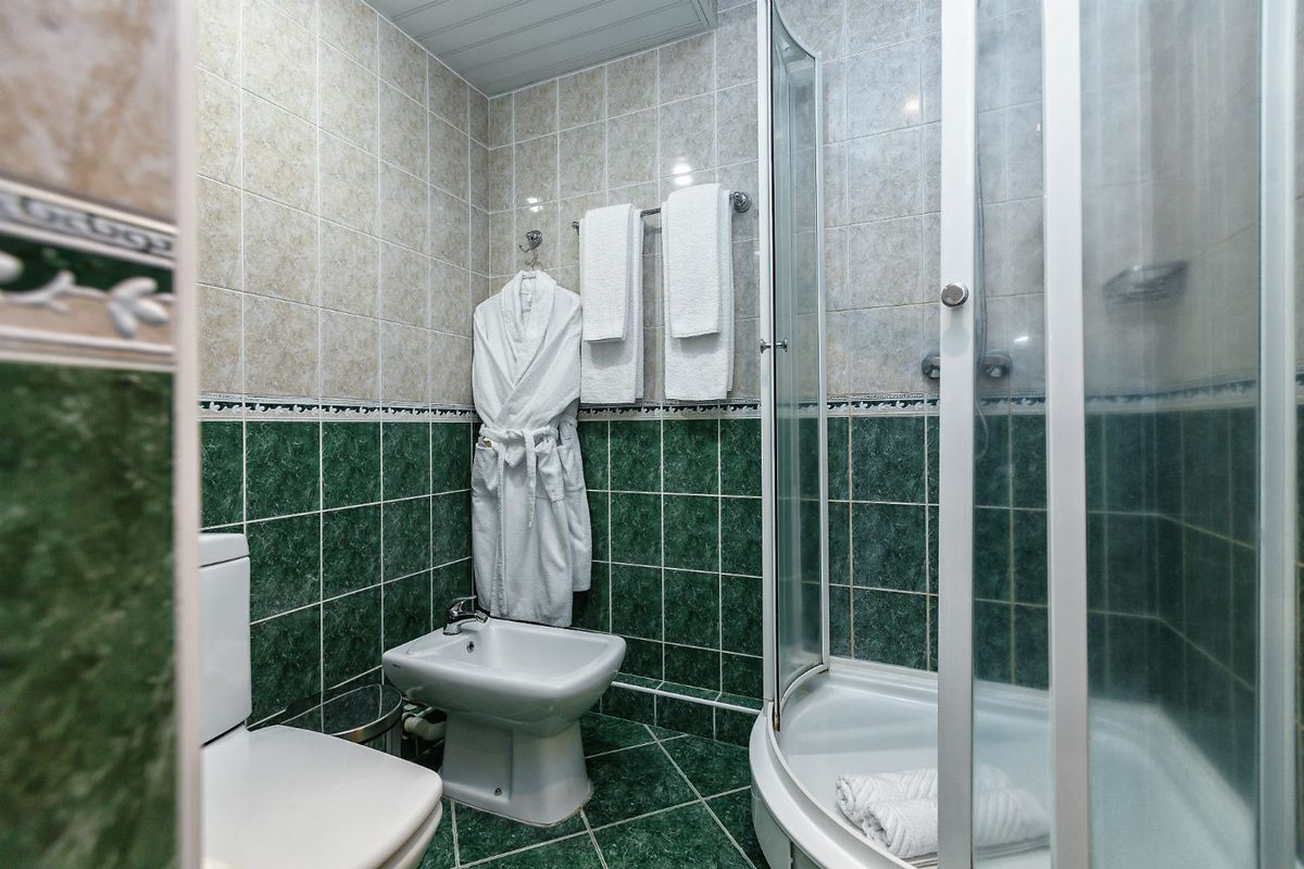 Санузел: душ, раковина, унитаз, биде, фен